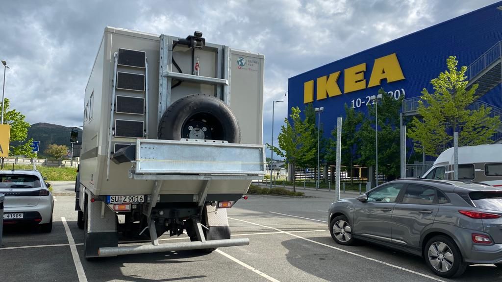 Wir haben den Tipp von anderen Wohnmobilisten bekommen, dass man außerhalb von Bergen bei IKEA Åsane auf dem Parkplatz stehen kann und zudem von dort ein (Gratis-)Bus ins Zentrum von Bergen fährt – cool …
