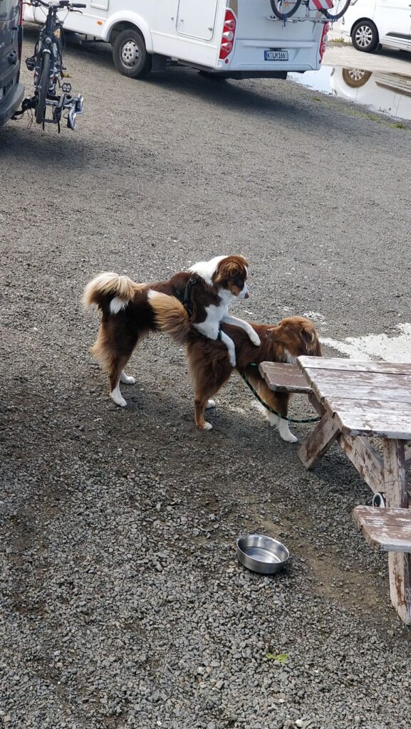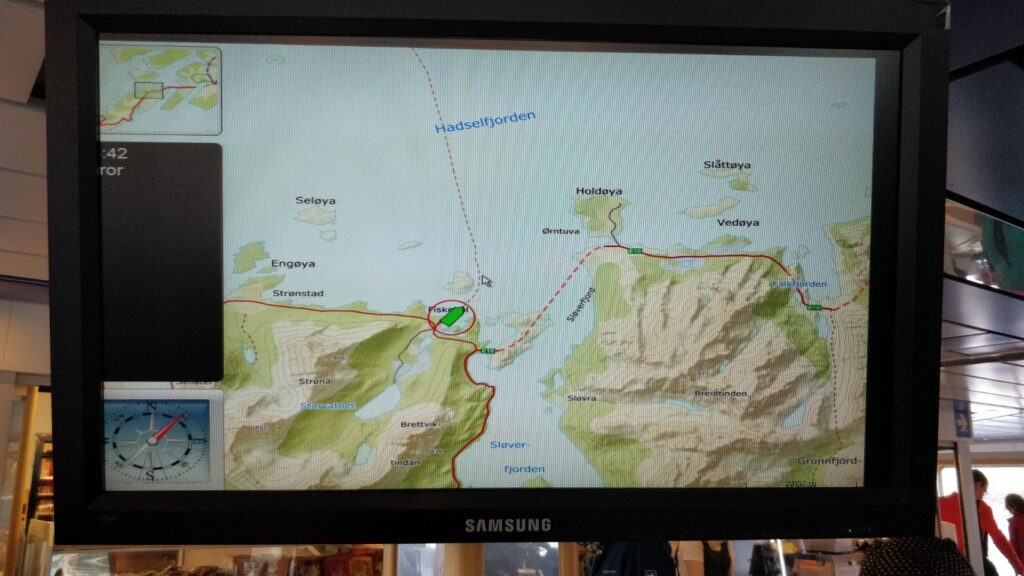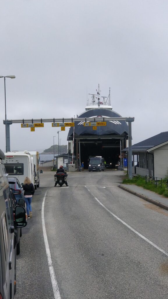 Heute wollen wir weiter in Richtung Andenes. Dort fährt die Fähre nach Gryllefjord ab. Es gibt wieder ein Abschiedsraufen von Cuba und Gioia – wobei wir schon vermuten, dass wir uns an der Fähre Fiskebøl – Melbu nochmal treffen… Und so ist es auch ! Auf der Fähre müssen die Hunde allerdings – jeder in seinem Auto (… besser ist das ) – bleiben… In Gryllefjord angekommen, trennen sich unsere Wege … zumindest kurzfristig …
