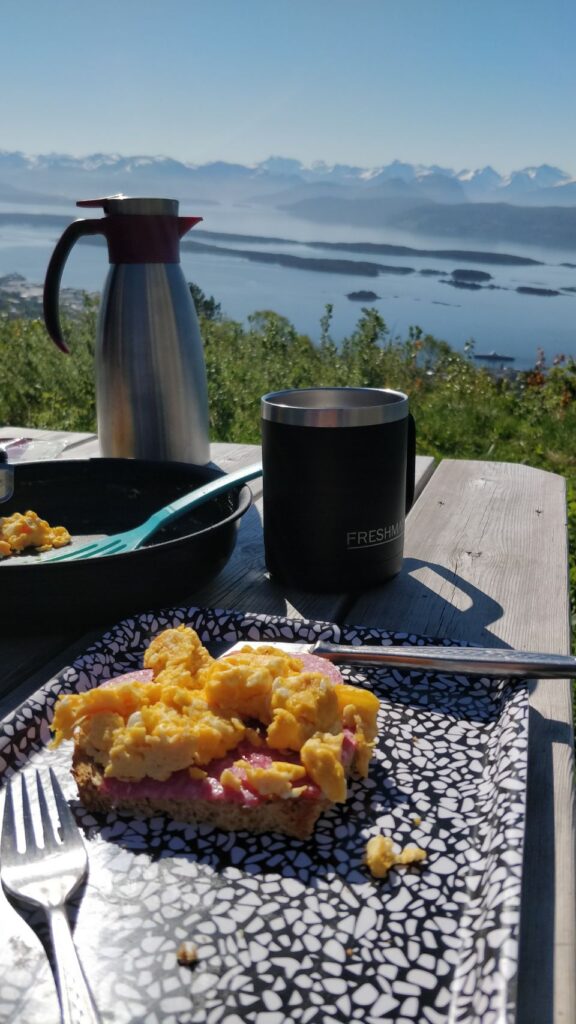 Endlich mal draußen frühstücken und dann dann auch noch mit Blick über….