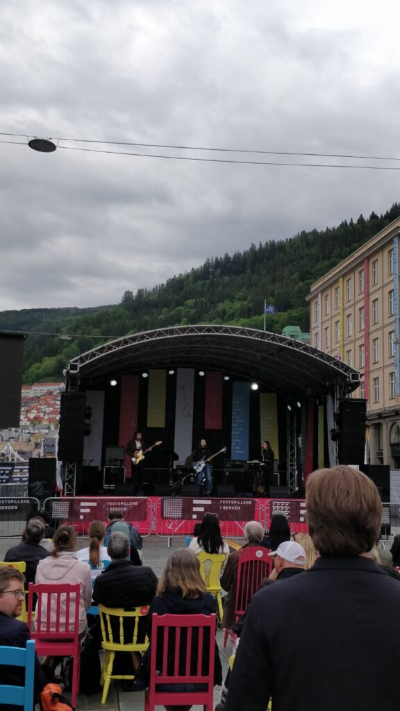 Zum Abschluss schauen wir uns noch ein kleines Live-Konzert der Band: „Misty Cloud“ an. Aktuell findet nämlich das Bergen Festival statt mit auch „Umsonst und draußen“- Veranstaltungen.