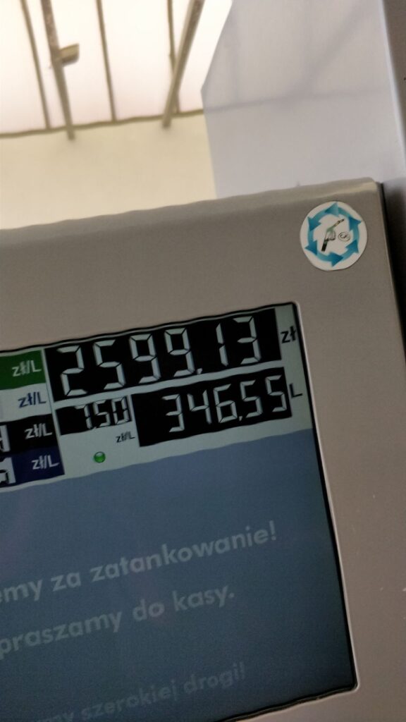 Erstes Highlight in Polen ist … ⛽… genau, die Tankstelle!!! So preiswert haben wir lange nicht getankt, also kriegt der KRÜMEL erstmal ordentlich den Bauch voll ⛽.