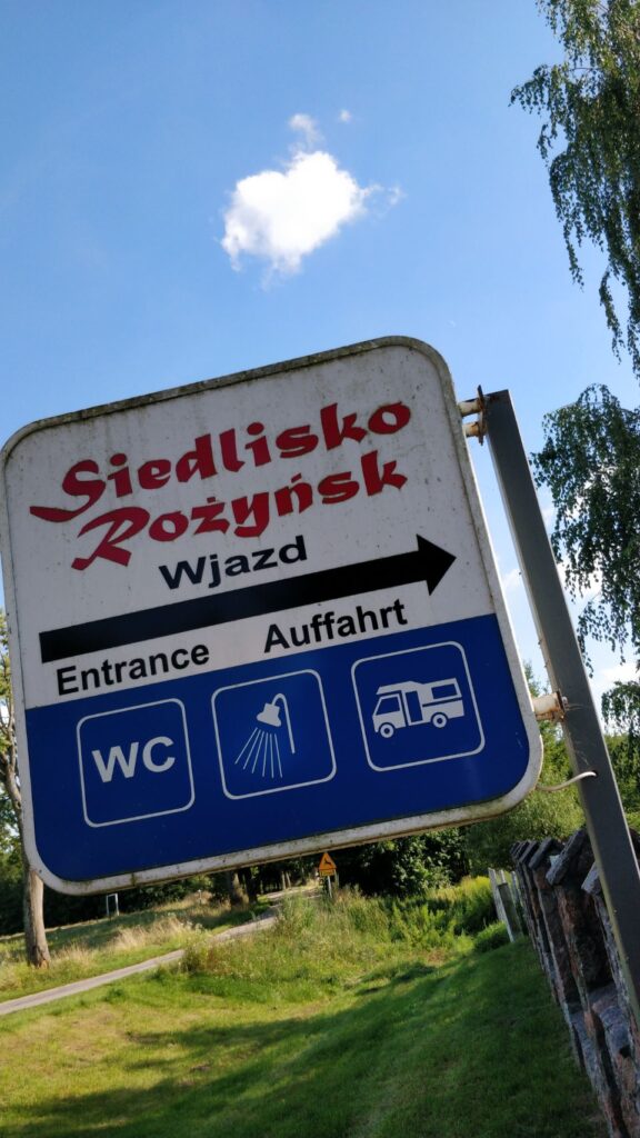 Wir haben uns für die nächsten Tage einen kleinen Agroturystyka- Camping direkt am Ufer des Druglin Duży Sees ausgesucht und nehmen mal 2 oder 3 Tage Auszeit vom Freistehen und Stellplatz suchen – manchmal ist das nämlich auch ein bisschen lästig (auch wenn’s keiner zugeben will…) und in Polen – wie sich noch herausstellen wird, auch nicht ganz einfach. Einerseits ist das „Wildcampen“ in Polen wohl für Wohnmobile eigentlich nicht erlaubt, je nachdem aber geduldet oder man holt sich eine Erlaubnis, andererseits sind die attraktiven Spots z. B. am See oft privat und abgesperrt.