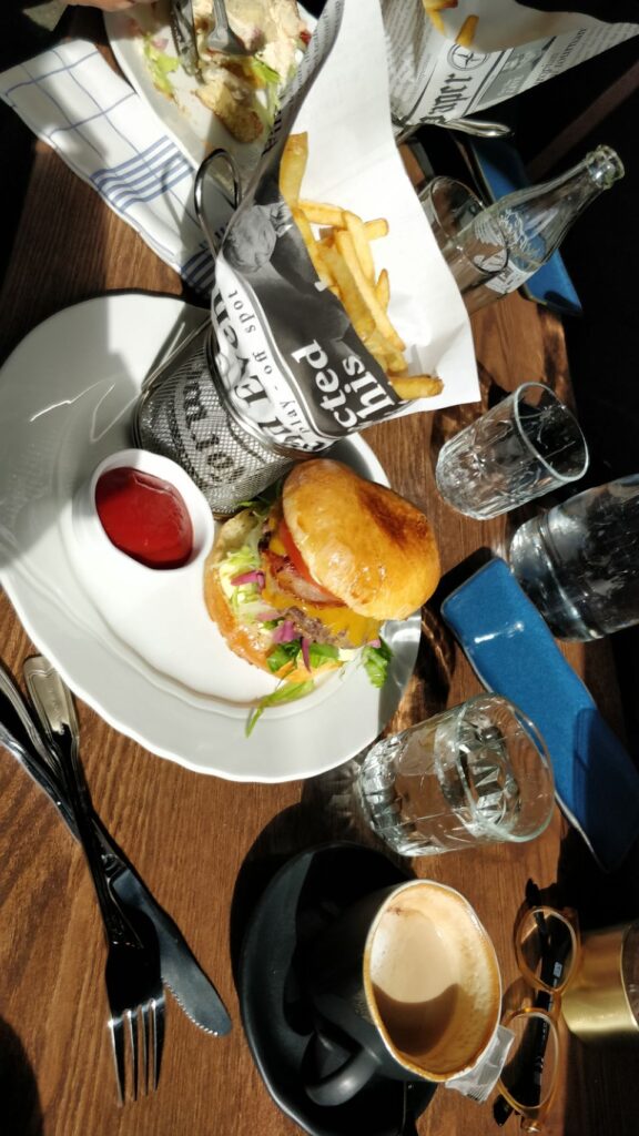 • Fotosafari mit der Husky – leider aufgrund des Wetters mit mäßigem Erfolg, dafür zum Trost lecker Burger und Cappuccino (ausnahmsweise mal Indoor im Café, da ohne Cuba unterwegs)