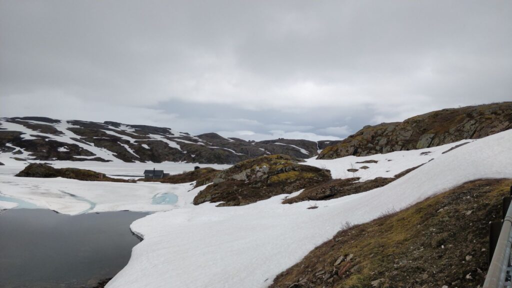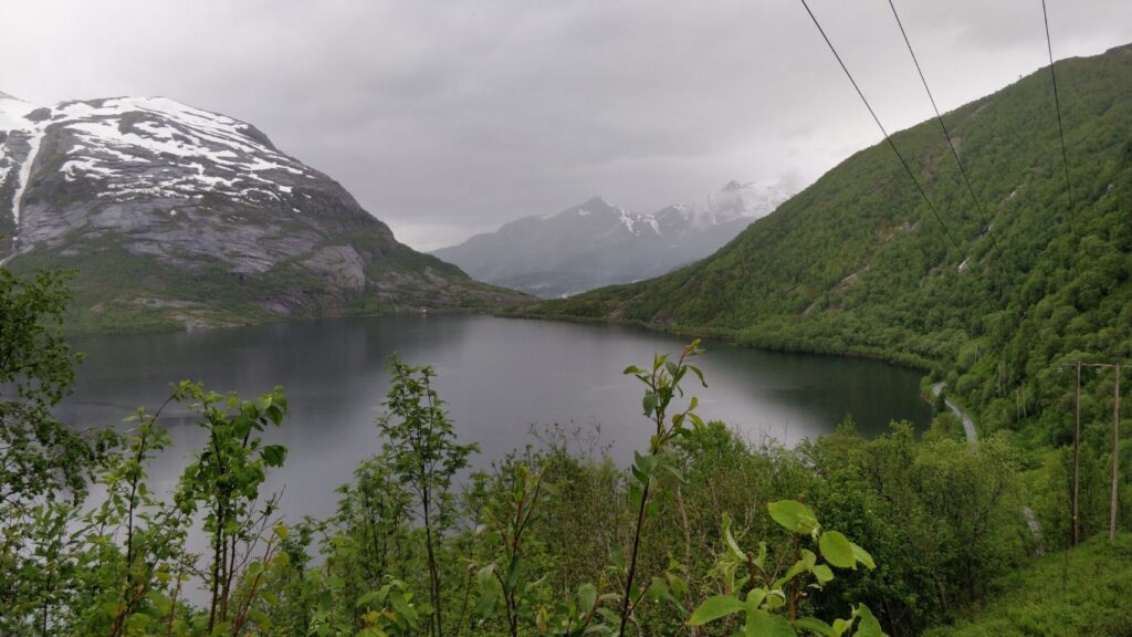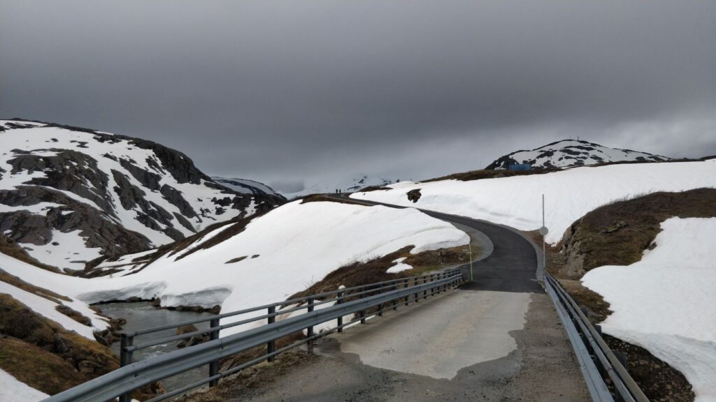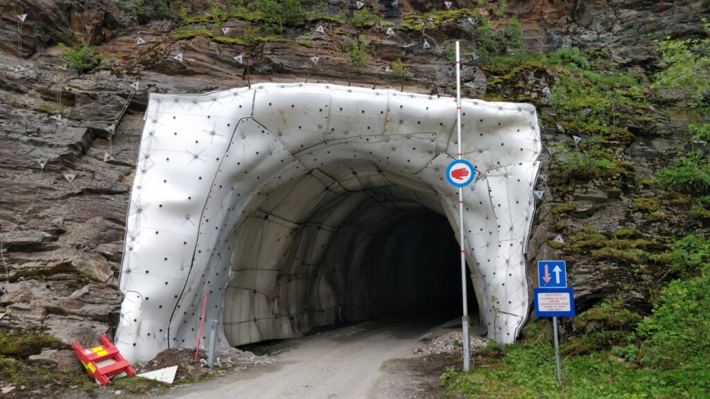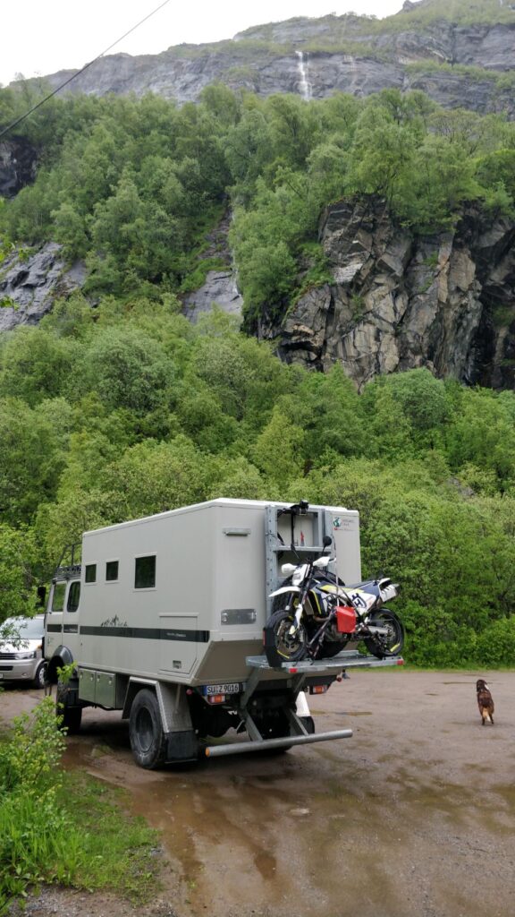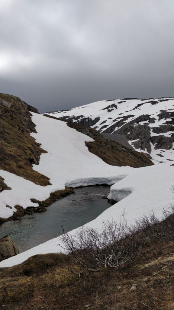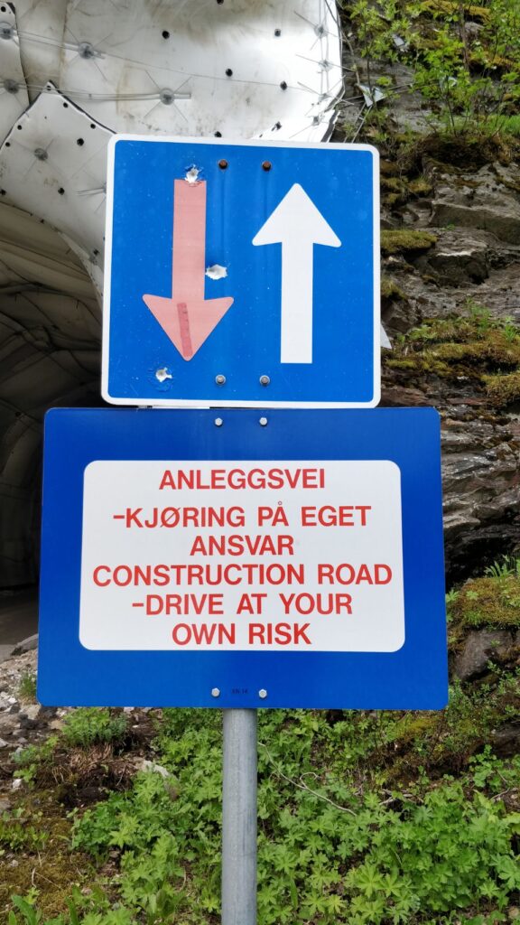 Und weiter geht’s über die schöne Fv 17 in Richtung Lofoten mit heute wieder 3 x Ferje ⛴️ fahren. Abends heißt das Ziel „Offroad Platz“ in der Nähe vom Glomfjord. Ganz kurz bevor wir da sind, lesen wir einen Kommentar von heute: „The last stretch of the road isn’t clear of snow yet, you can’t get to this location“. Außerdem muss man durch einen unfertigen und unbeleuchteten Tunnel…