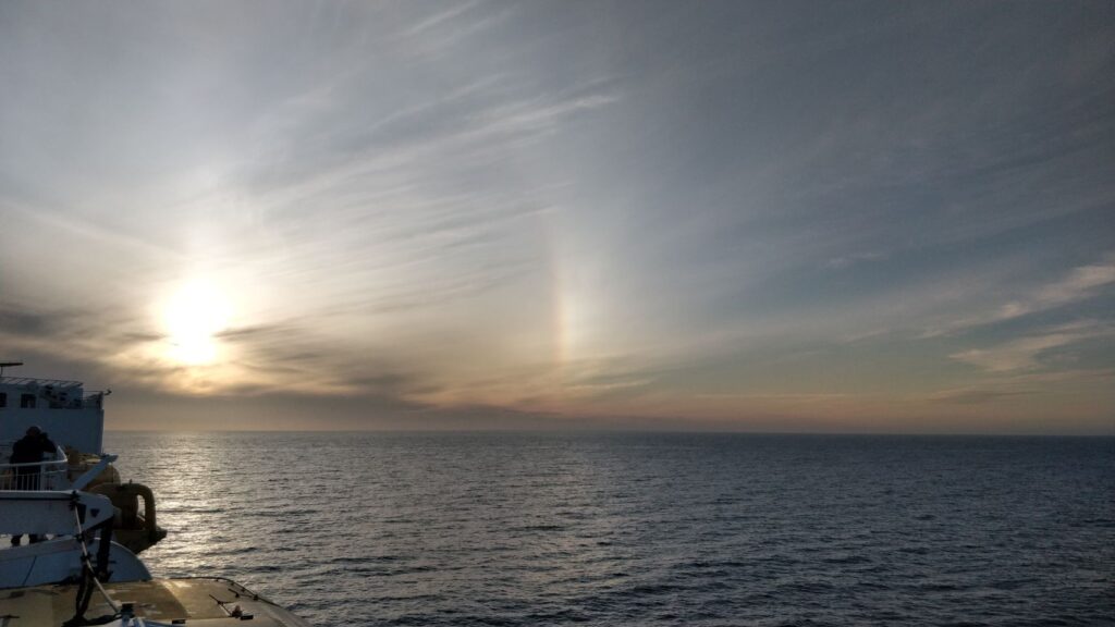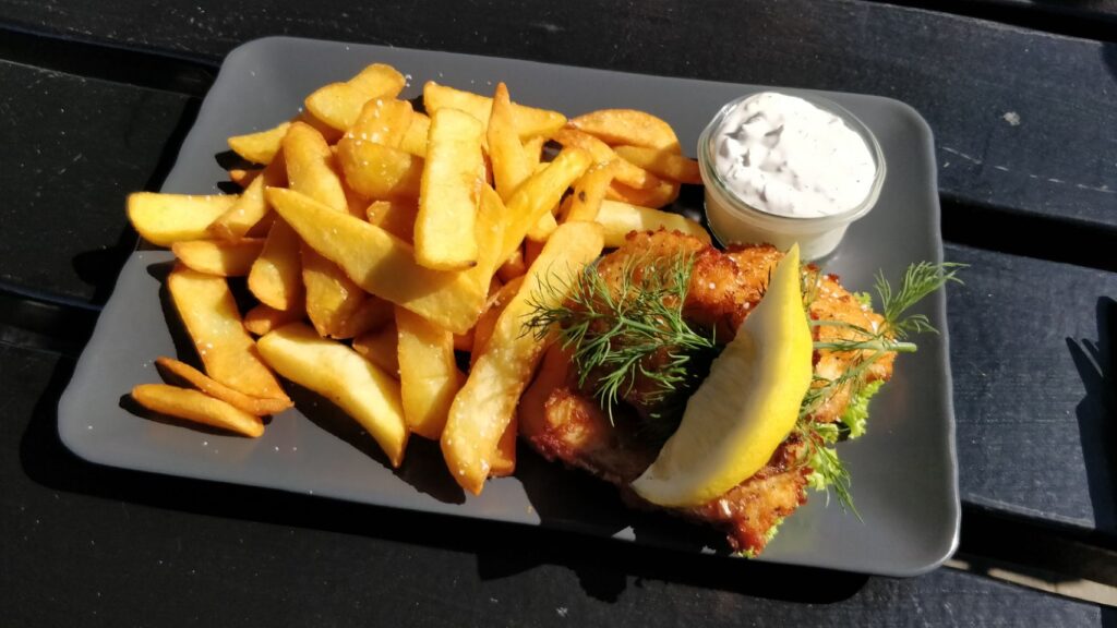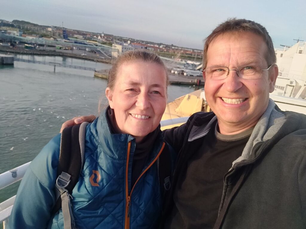 Wir waren schon Nachmittags da und haben die Wartezeit gut mit einem kleinen Stadtbummel (naja…), Fish & Chips vom Fiskehus inklusive einem „kleinen“ Softeis zum Nachtisch (sehr lecker…) und einem Spaziergang überbrückt. Trotzdem dann noch etliche Wartezeit, um 20.45 Uhr war Abfahrt und bei (glücklicherweise spiegelglatter See ) ging es dann – endlich – nach Norwegen!