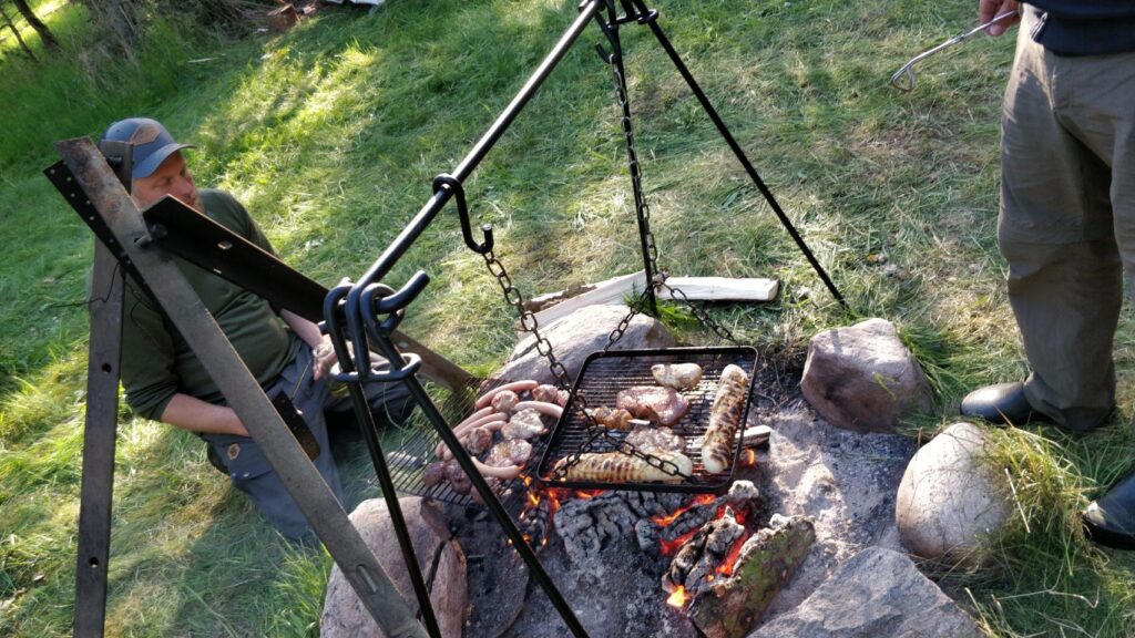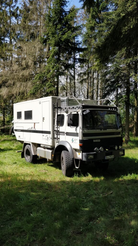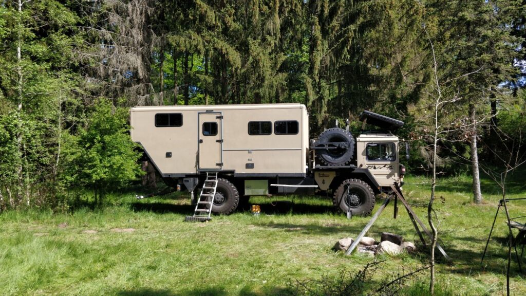 Über Facebook haben wir eine spontane Einladung von Thomas Möller aus Nim bekommen. Er hatte gesehen, dass wir in Dänemark sind und dann so : „Hey, kommt gerne vorbei!“ So sind wir bei ihm auf seinem herrlichen (sehr großen) Grundstück bei einem kleinen Treffen von 4×4 Drivern & Overlandern gelandet. Wir haben dort ihn und seine Frau Nete sowie Mona und den dritten Thomas (… …) kennenlernen dürfen, wahnsinnig tolle freundliche Menschen, und der Tag und Abend verging wie im Flug bei Gesprächen, Grillen und Lagerfeuer. Zwischendrin gab es sogar noch ein kleines „Offroad Driving“ – allerdings nicht für unseren Krümel, sondern die „kleinen“ 4x4er (Landcruiser, Subaru Forrester). Das Gelände von Nete & Thomas ist – wie gesagt – ziemlich groß, also kleine Offroad-Strecke inklusive. Thom & ich durften als Beifahrer auch mal mitfahren.
