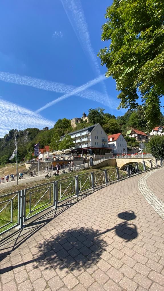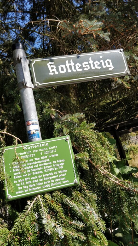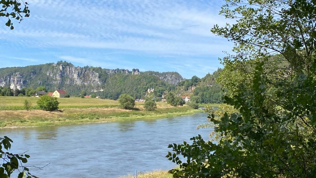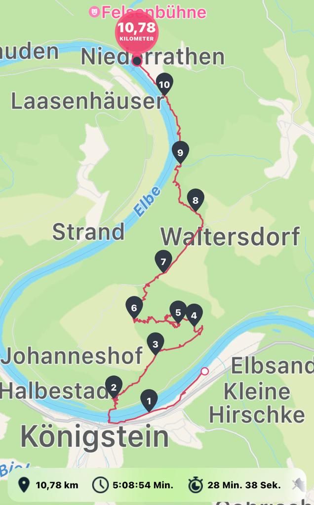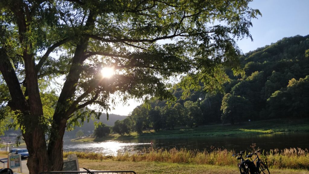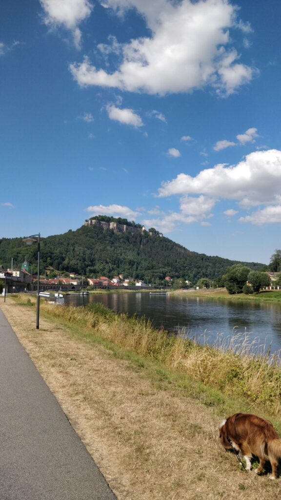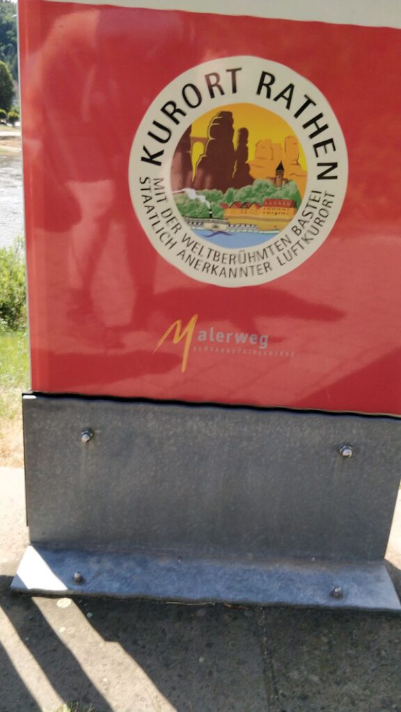 Zweites Tagesziel ist Rathen, also marschieren wir wieder runter vom Berg und an der Elbe entlang bis in den kleinen Kurort Rathen.
