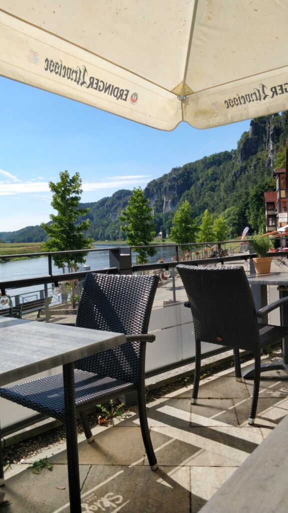 Eigentlich war der Plan, von dort mit der Fähre wieder bis Königstein zurück zu fahren, aber die fährt nur 2 x und die letzte Abfahrt ist um 15 Uhr – wir sind aber gerade erst hier angekommen.
