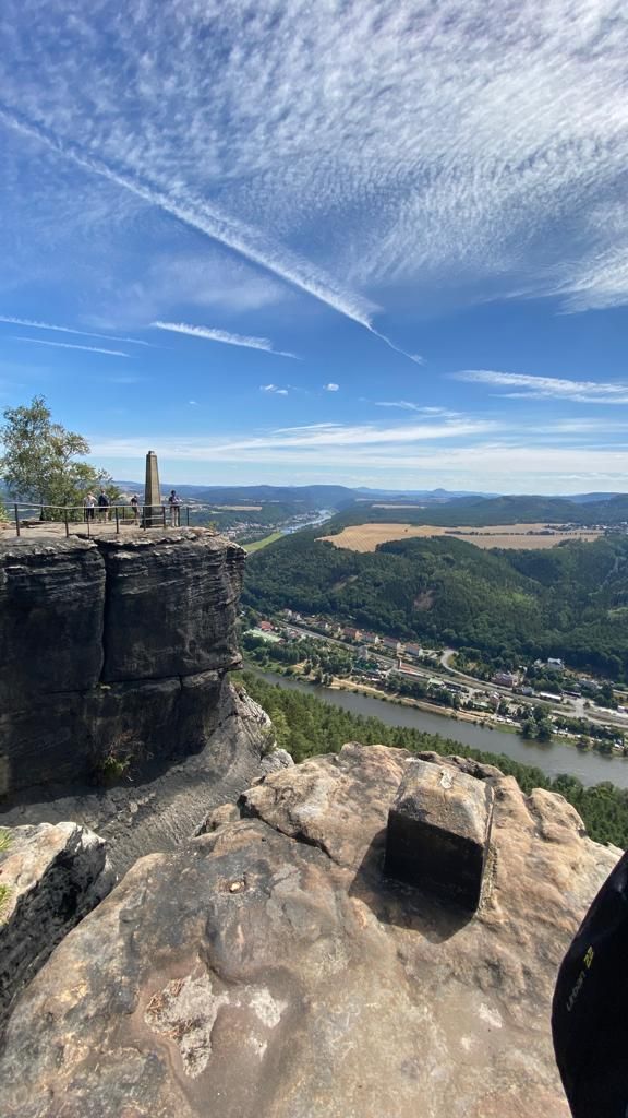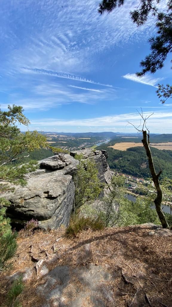 Bergauf ist ja nicht so meine Disziplin, außerdem ist es mega heiß, aber wir haben Glück und der Weg ist meistens im Schatten und ich schlage mich tapfer bis zum Plateau Lilienstein auf 415 m Höhe. Dort werden wir mit einer 360 Grad-Rundum-Aussicht belohnt .