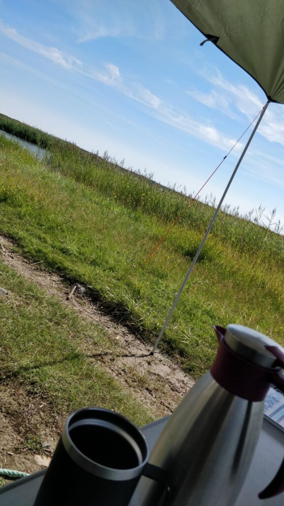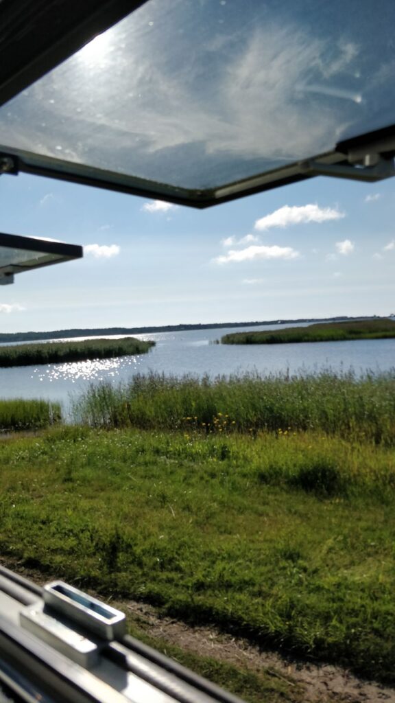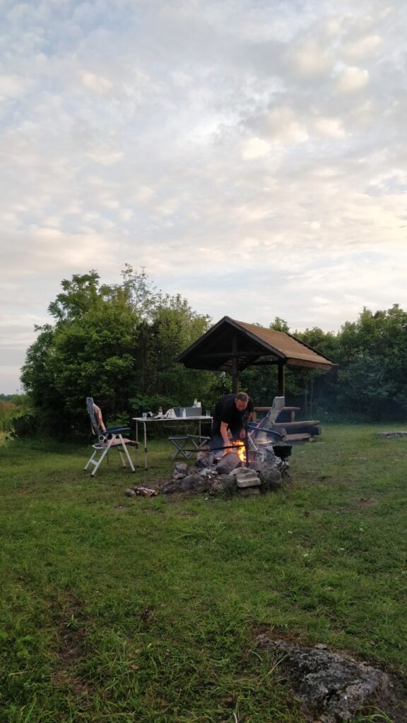 Zum Abendessen gibt’s frischen Fisch und Kartoffeln vom Grill und Gesellschaft: wir lernen Peggy und Stefan und ihre beiden Kinder Helen und Ben (auch bekannt als PS Camper) kennen und sitzen am abendlichen Lagerfeuer zusammen, bis die Kleinen ins Bett müssen.