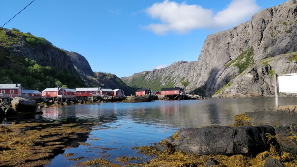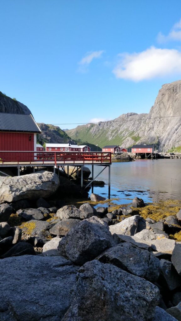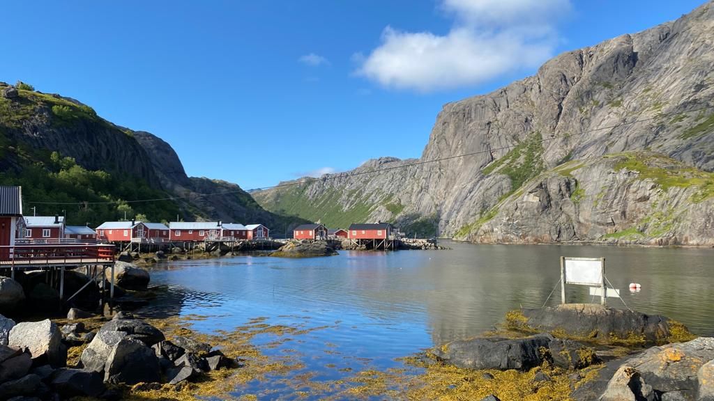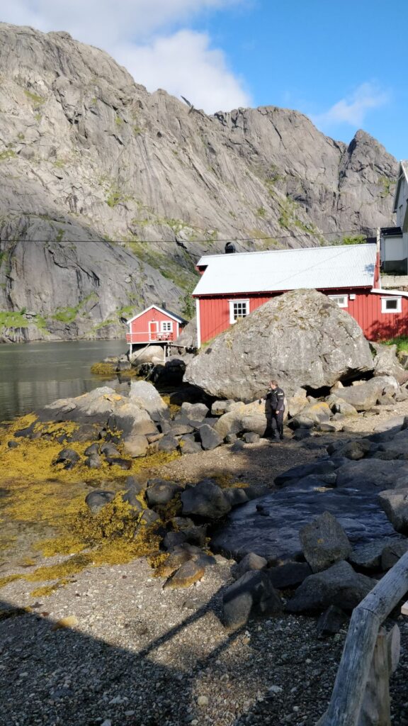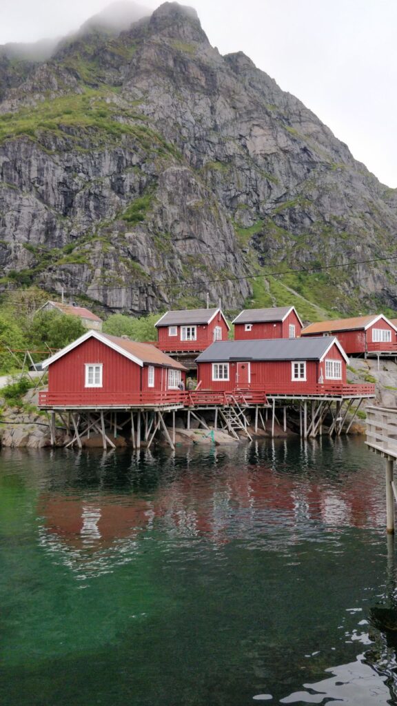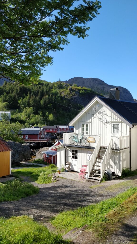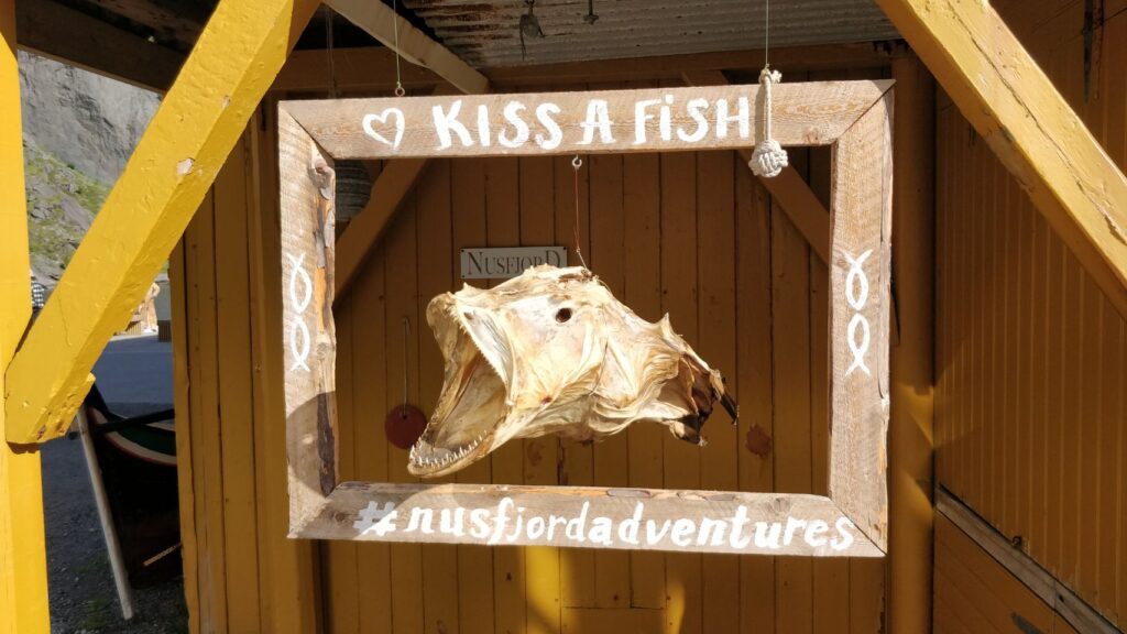 3. Nusfjord. Die Landschaft unterwegs zum Nusfjord ist – wieder mal – einfach schön! Nusfjord selbst ist auch ein kleines Museumsdorf, kostet wohl eigentlich Eintritt, es ist aber so gut wie nix los, es will auch keiner Geld und man kann trotzdem in das ein oder andere Haus reinschauen. Es gibt eine „Bakeri“, die für ihre (die „besten“…) Zimtschnecken und (die gibt’s nur hier…) Vanille-Zimtschnecken berühmt sind – für heute leider gerade geschlossen und auch nix mehr da. ♀️