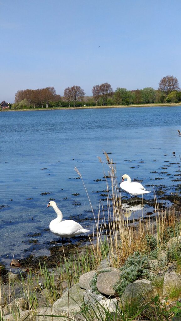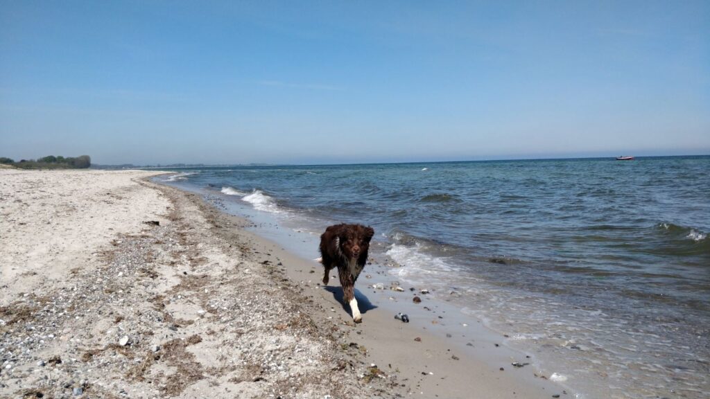 ——————– # Day 8: Maasholm. Chillday mit einem langen Spaziergang durch das Naturschutz- bzw. Vogelschutzgebiet am Schleifjord entlang und bis zum Ostseestrand (Cuba ist ein echter „Wasserhund“) und zurück nach Maasholm. Dann erst zur -Bude und anschließend zur-Bude … Alles bei ☀️ und ein bisschen ️.