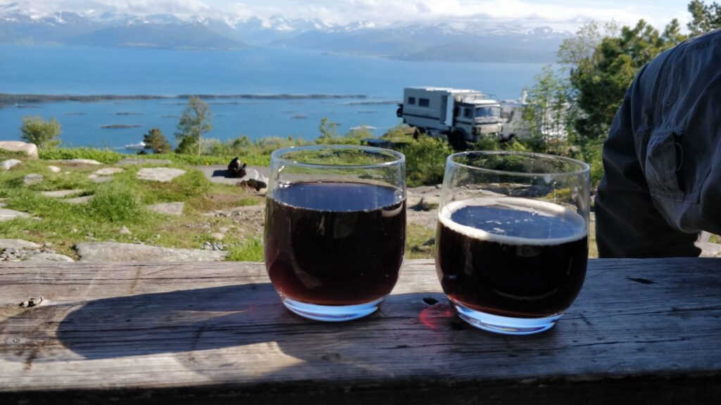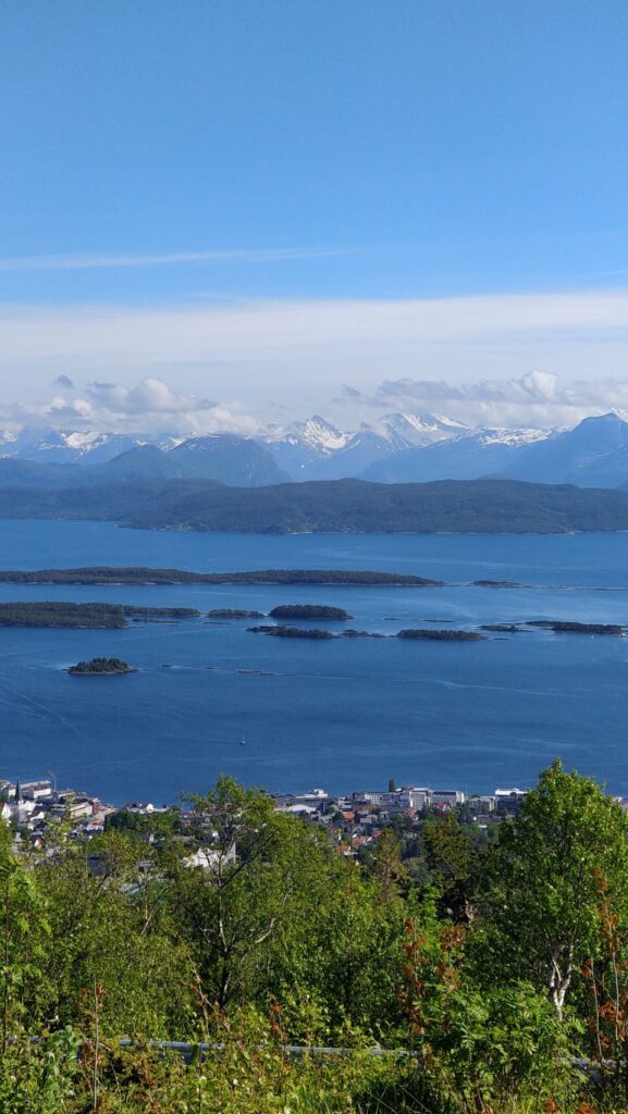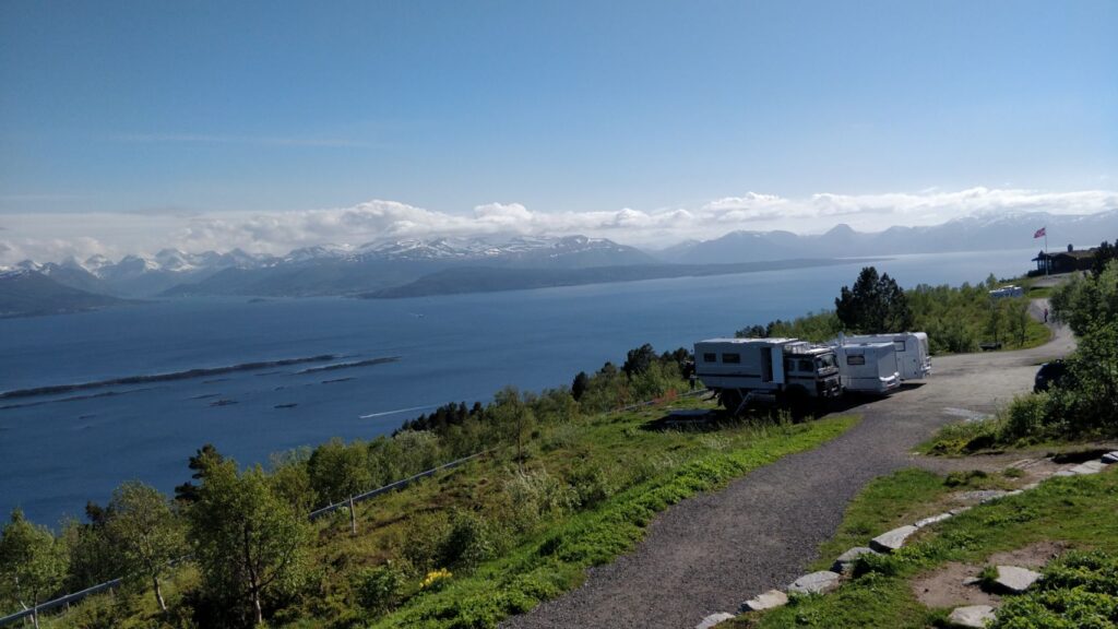 Heutiges Ziel ist der Aussichtspunkt „Molde Panorama“ oberhalb des Städtchens Molde (da der Platz in Park4Night steht, sind wir natürlich nicht die einzigen hier ♀️). Die Aussicht ist – mal wieder – grandios, und heute sogar bei Sonnenschein. Was will man mehr ☀️