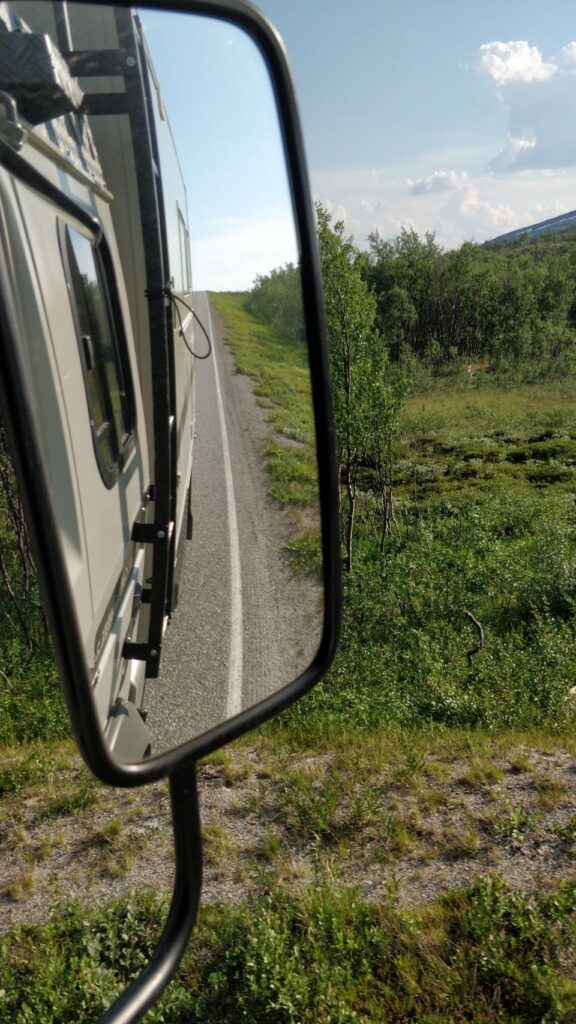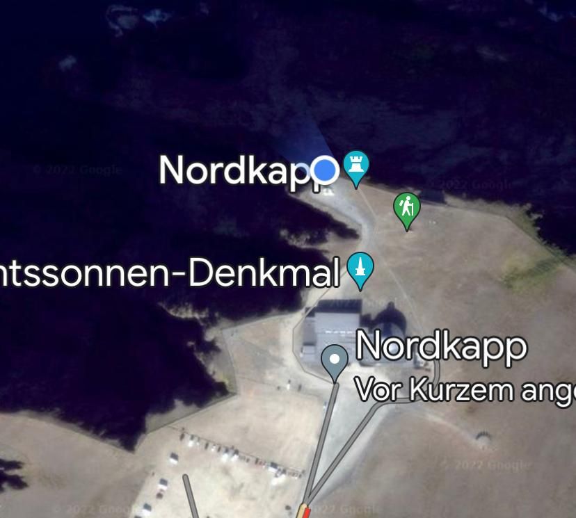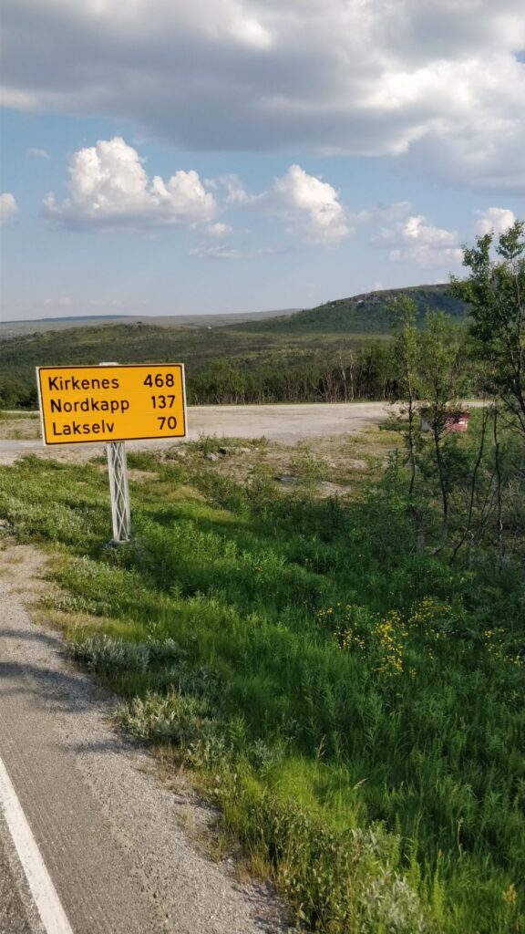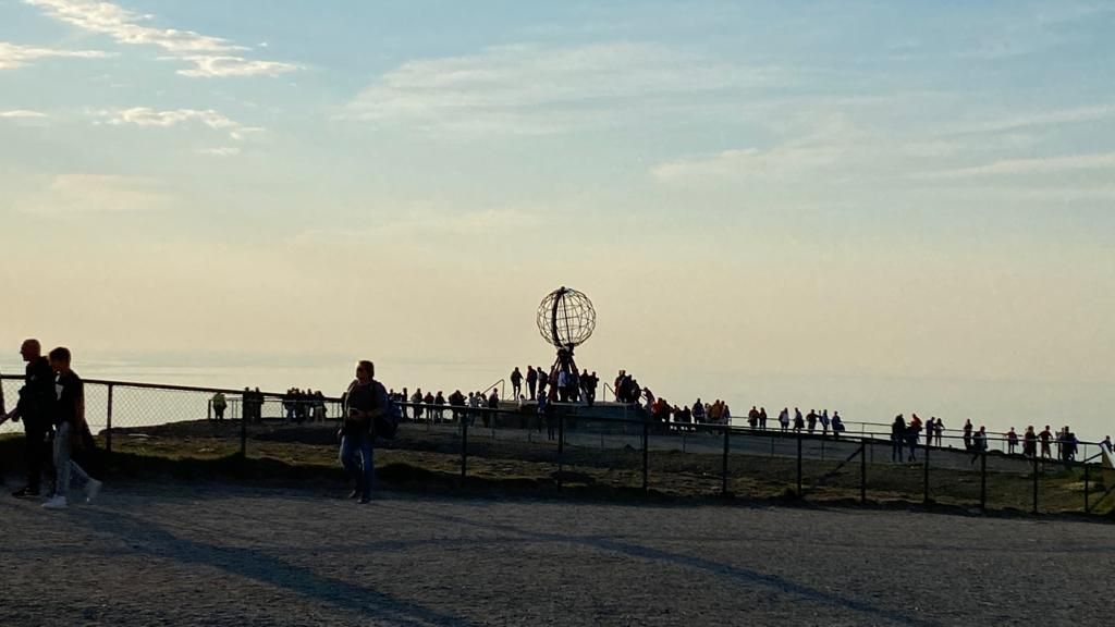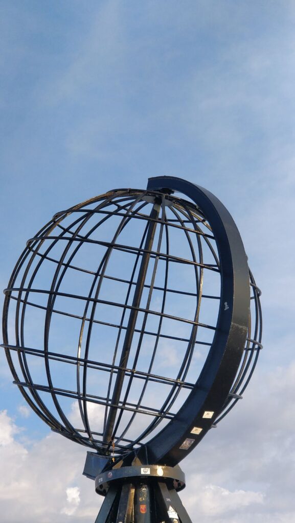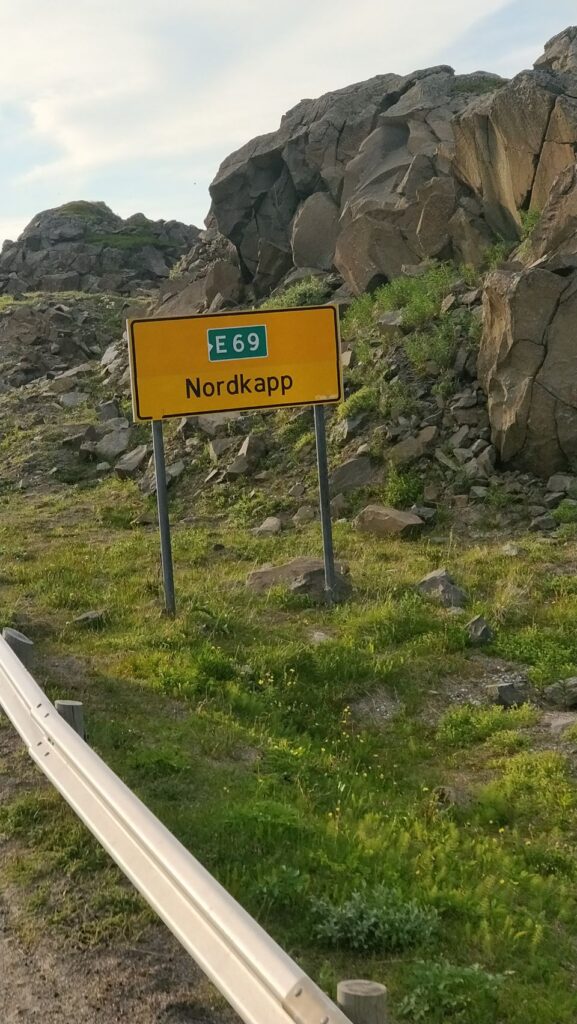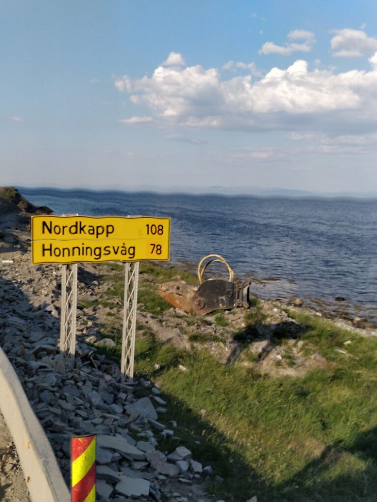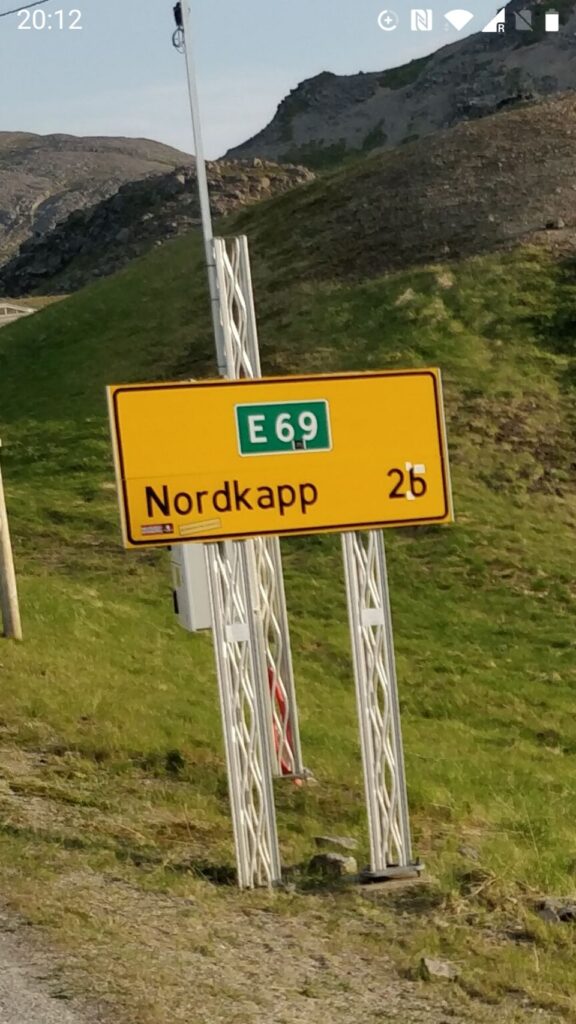 Und zwar nach etlichen Tagen bestem Wetter mit Sonnenschein und (eigentlich schon wieder zuviel) Hitze „Just in Time“, um die obligatorischen Ziel-Fotos an der Nordkapp-Kugel noch bei Sonnenschein zu machen.