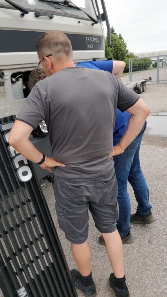 Für einen ersten Blick auf den Motor reicht es aber und – tatsächlich hat es 2 Keilriemen komplett zerlegt … Wenigstens ist die Lichtmaschine in Ordnung . Wir fragen, ob womöglich jemand am Wochenende helfen kann und der Kollege will Mal gucken und sich am Sonntag melden. Falls sich bis morgen Nachmittag nichts ergibt, will Thom es dann selbst versuchen (mit mir als Assistent )… Wobei es zunächst gilt, ein Rätsel zu lösen: warum ist ein anderer Keilriemen auf der Lichtmaschine, als in allen recherchierbaren Informationsquellen angegeben????