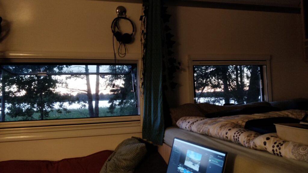 Bei einem leckeren Frühstück warten wir ab, bis der Regen vorbei ist und nutzen die Zeit mal wieder für Video und Social Media Updating.