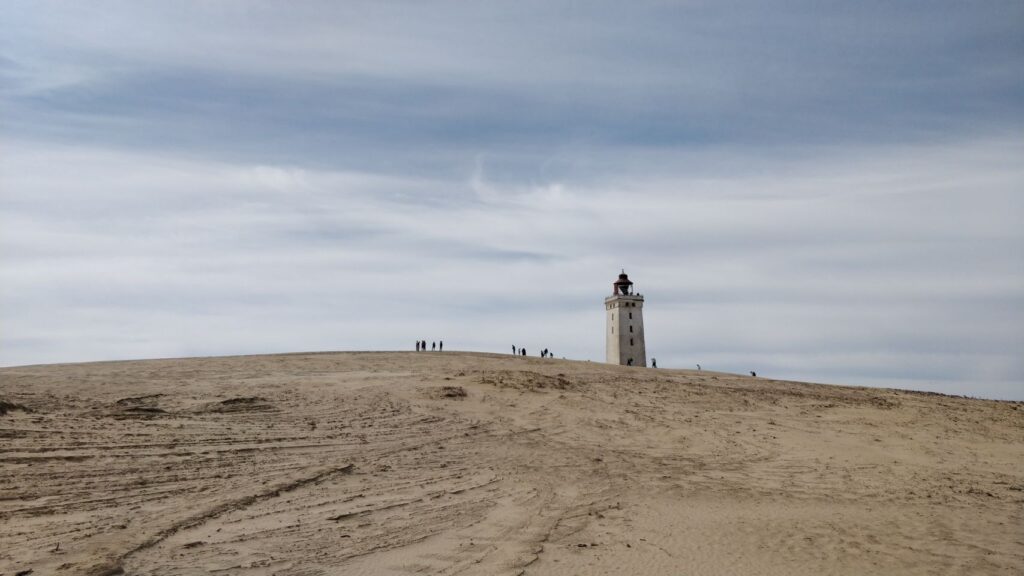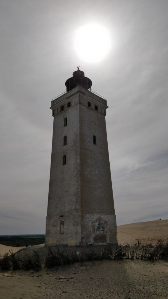 Weiter in Richtung Norden. Direkt bei Løkken nehmen wir aber noch ein Point to visit mit: Rubjerg Knude Fyr. Im Dezember 1900 wurde an der Küste von Rubjerg hinter einer damals nur zwei bis drei Meter hohen Düne das Fyr, der 23 m hohe Leuchtturm, zusammen mit vier Nebengebäuden gebaut. Die Düne hat im Laufe der Zeit immer mehr Sand angehäuft und ist mit ca. 100 m jetzt eine der größten Wanderdünen Europas. Aufgrund der abnehmenden Distanz zum Meer drohte der Turm ins Meer zu stürzen, daher wurde er am 22. Oktober 2019 um etwa 70 Meter verschoben. Sehr schön dort und auch wieder drumherum Möglichkeit, durch die Dünen zu wandern.
